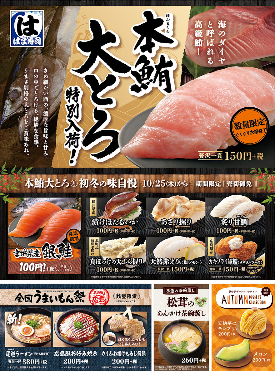 はま寿司は「本鮪大とろと初冬の味自慢」フェアを10月25日から開催します。