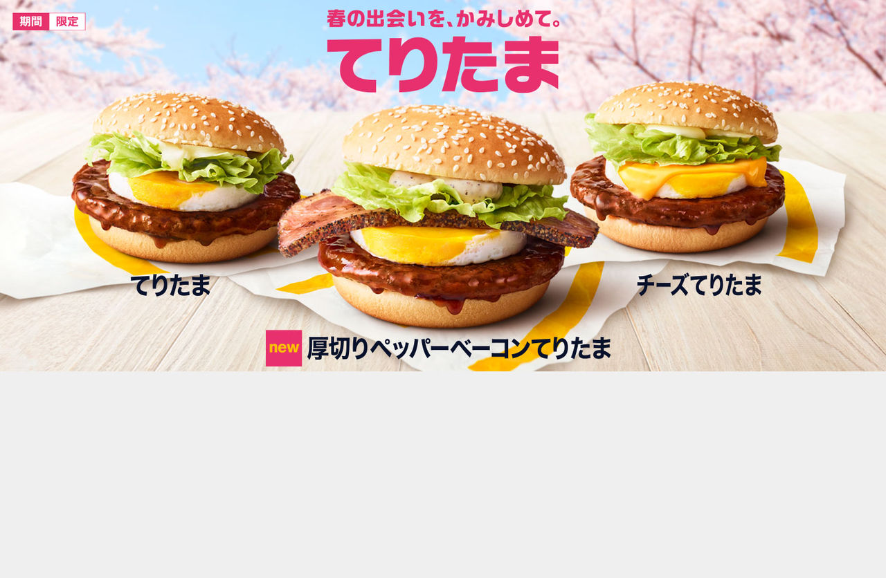 マクドナルドは「てりたま」シリーズを3月13日から期間限定で発売します。定番の「てりたま」「チーズてりたま」に加え、新商品「厚切りペッパーベーコンてりたま」の3種のバーガーが登場。さらに、朝マックでは「てりたまマフィン」も発売されます。