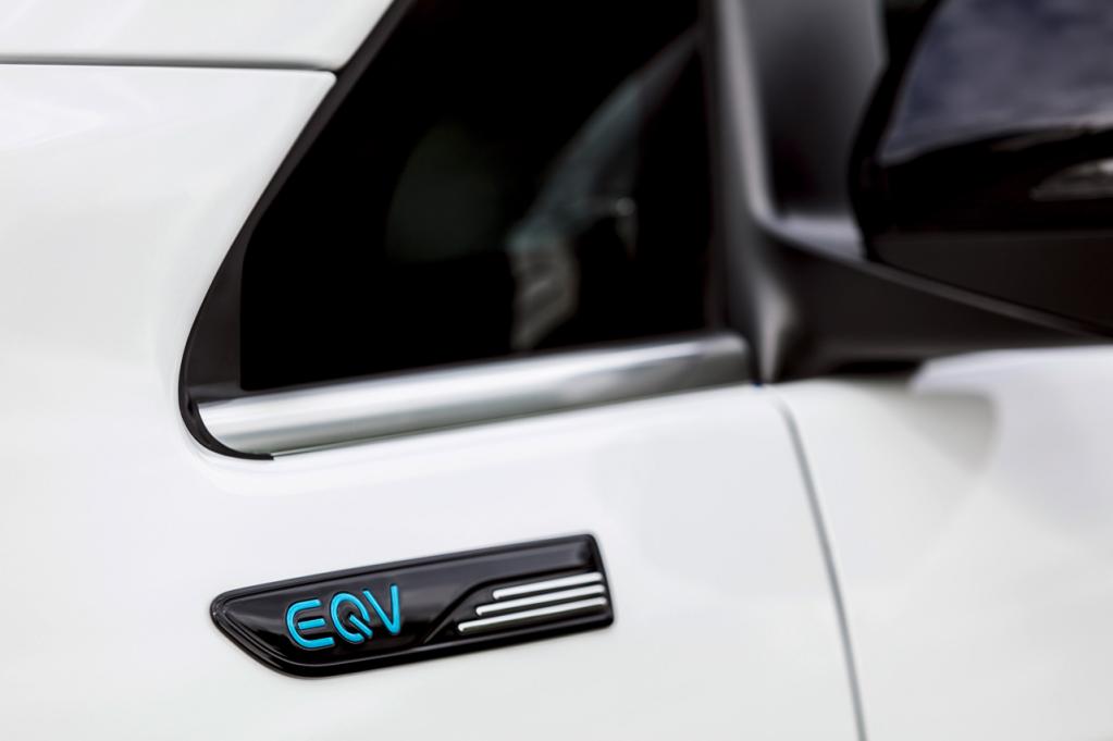 そのほか、フロントバンパーのコーナー部分に設けられた給電用ソケットの差し込み口や、サイドミラー下部に装着された「EQV」バッジなどがEQシリーズを主張する。