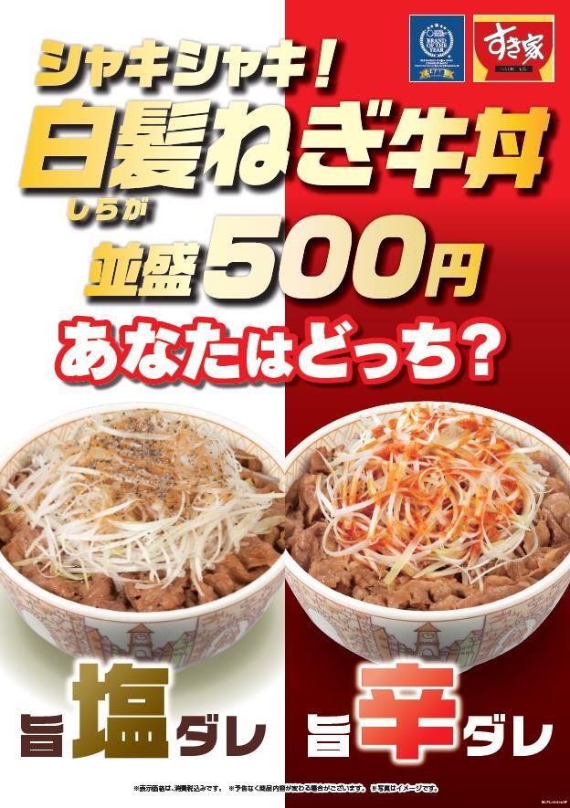 すき家 旨塩、旨辛選べる「白髪ねぎ牛丼」